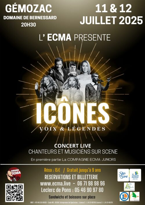 11 & 12 juillet – GÉMOZAC Icônes – Voix et légendes Revivez les plus grands titres des icônes de la musique, de Johnny Hallyday à Céline Dion, en passant par Dua Lipa, Claude François, Edith Piaf, Bruno Mars, Beyoncé et bien d’autres. Navigation articlePrécédent Article précédent :Projet AssociatifSuivantArticle suivant :L’ESAT MONTANDON organise une brocante vide-grenier le 22/06/2025