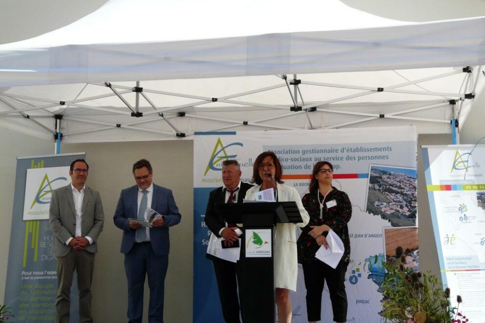 L’Association Emmanuelle a inauguré le 20 juin dernier la Maison d’Accueil Spécialisée de Haute Saintonge sur le site du domaine du château de Bernessard à Gémozac, en présence de Diane COMPAIN, Présidente de l’Association Emmanuelle, Thierry BOSCARIOL, directeur général, Valérie COCO, directrice de la MAS, Loïc GIRARD, maire de Gémozac, Laurent FLAMENT représentant l’ARS Nouvelle…