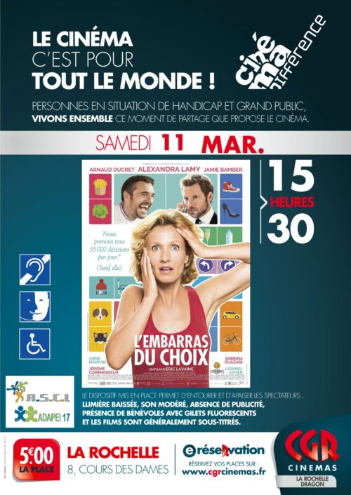 L’ASCL de l’ADAPEI 17 organise une séance de cinéma dans le cadre de Ciné-Ma Différence le samedi 11 mars 2017 à 15 h 30 au cinéma CGR le Dragon à La Rochelle.